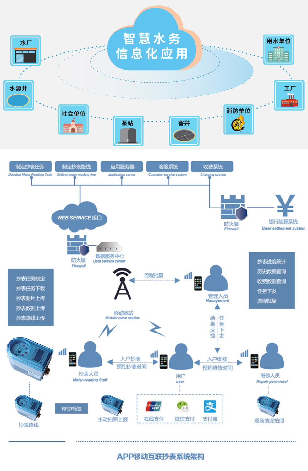 慧怡水表厂家智慧水务信息平台建设为水务运营企业提供污水处理厂、净化水厂、自来水厂、管网、泵站、污泥处置厂、城市河湖的运营管理服务;为设备维修服务企业提供设备在线数据和维修管理服务;为污泥运输服务企业提供污泥计量、运输监控服务;为设备厂商提供自产设备的在线监测、故障管理和生命周期分析服务;为水环境管理部门提供水质、水量、污泥外运监管服务。